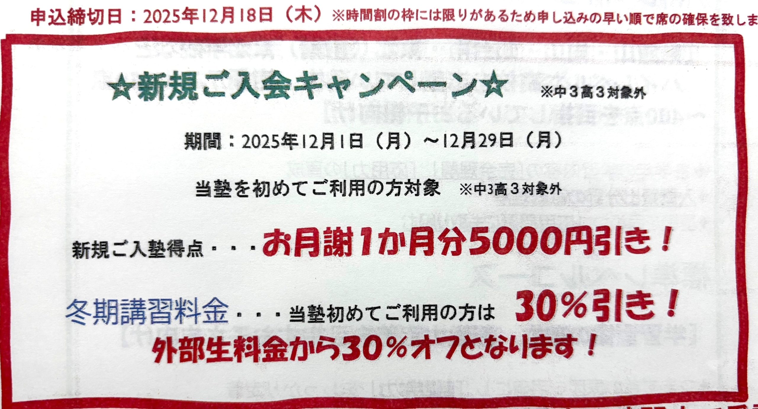 新規割引あり!冬期講習受付中!寒い冬を才で暖か~く!